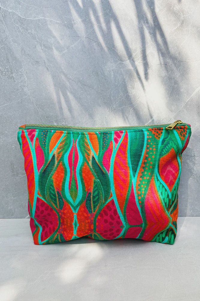 A quilted toiletry bag designed to carry skincare, not bodies. Made from a padded 50% French linen and 50% cotton blend fabric with brass zipper closure. Designed with our Toco print, this pretty pouch will brighten any bathroom routine.